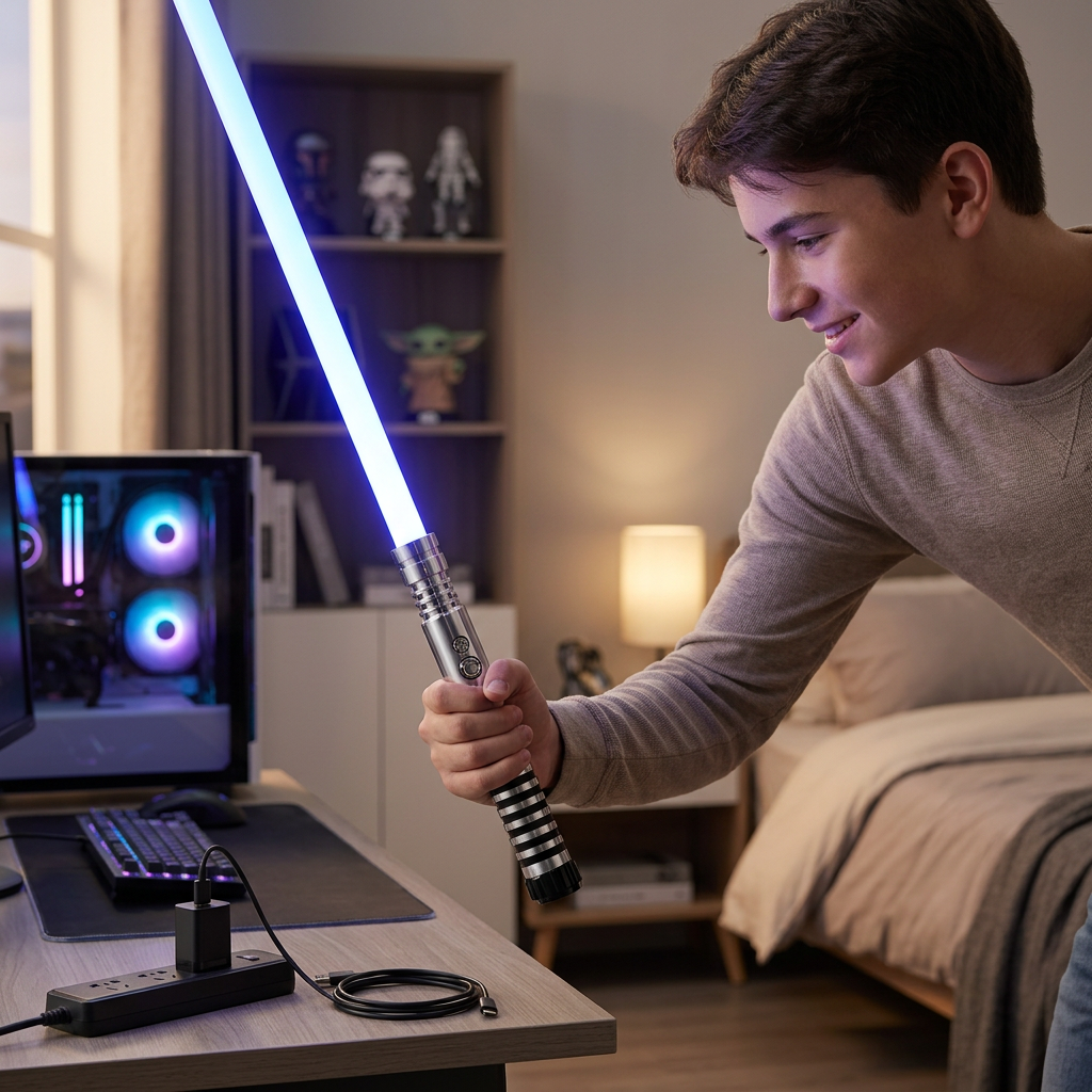 Bought two — one for my kid and one for myself. We duel every evening now. The USB charging is super convenient and the blade glows beautifully.